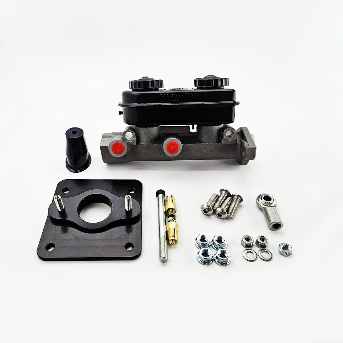 The UPR Manual Brake Kits use commonly available high-quality Strange Engineering 1.125 inch bore master cylinders which is a good fit for most disc brake systems. A good ballpark pedal ratio to shoot for with this size master cylinder is 6 or 6 1/2 to 1. Driver preference can determine if you want more or less leverage.