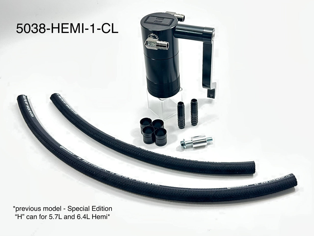 Limited Production with Hemi "H" machining on the top of the catch can! Hoses may require trim to length depending upon the application.